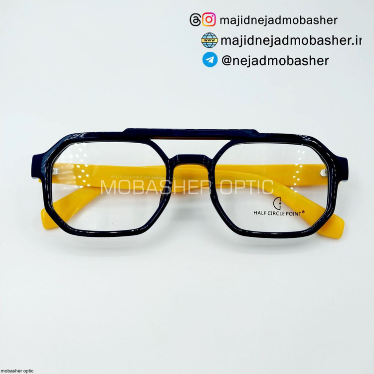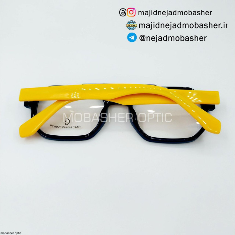 جنس فریم TR90 استات ضد حساسیت دورنگ مشکی زرد و طوسی ابی میباشد